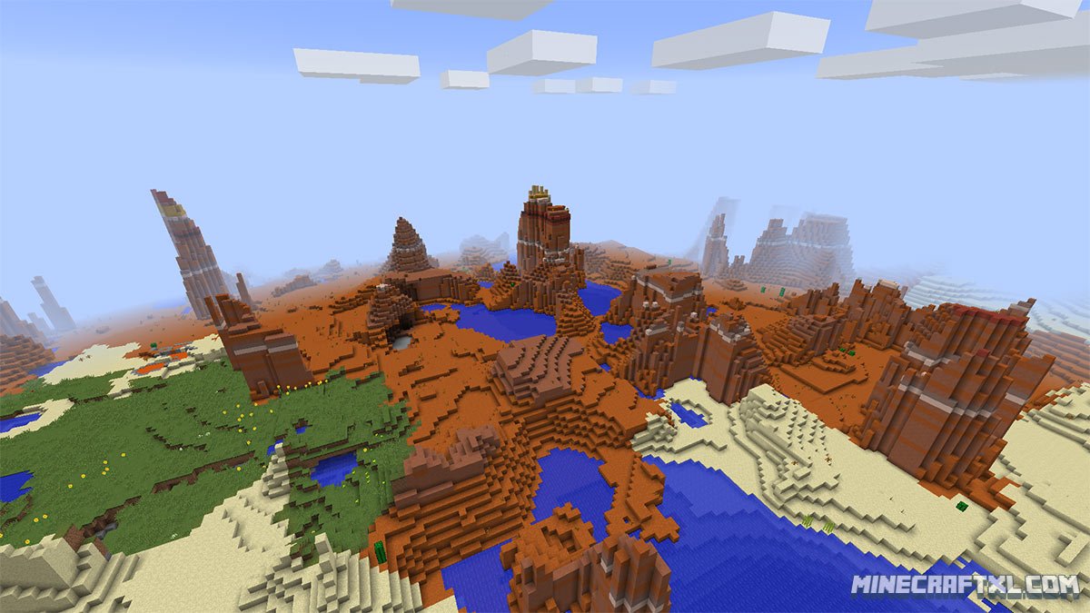 Further back north, you will run into a very cool mesa biome, so all your clay needs are covered as well, which is another cool features of the Diamonds Galore Seed, plenty of varied biomes right around the spawn area.