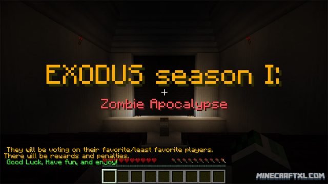 The Exodus Season 1 Map for Minecraft is a map where the story is that players from all over have been selected to participate in a new TV-show.